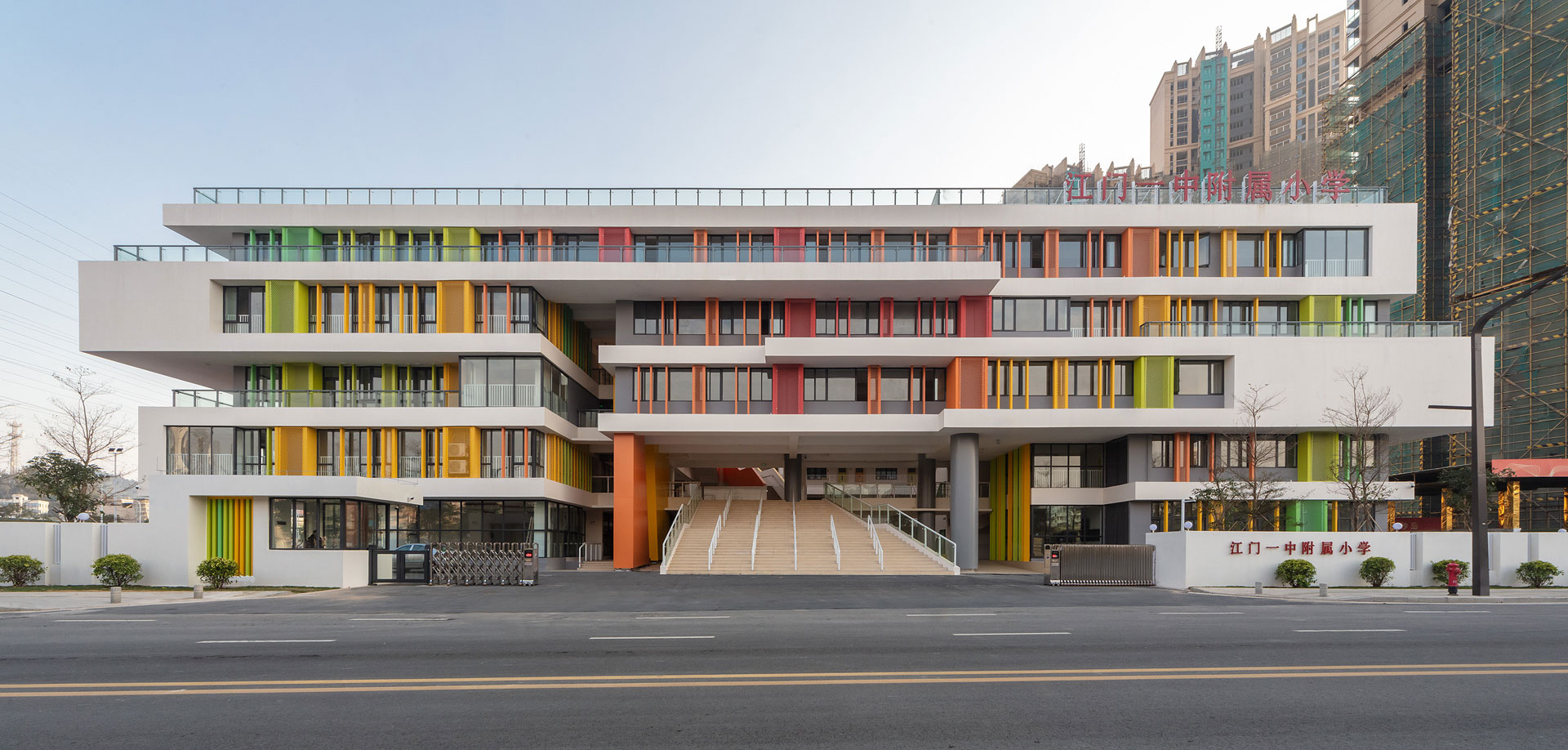 Guangdong Urban and Rural Planning and Design Institute Co., Ltd.Taking Wucai Shuyuan as the design theme, centering on the concept of “book has roads and diligence as the path”,and with the architectural design concept of green, fusion and openness, we strive to create a multi-functional, rich and imaginative building in a limited site. New Era Primary School.